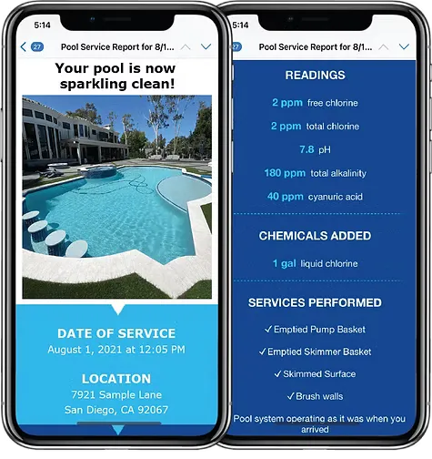 Each week, after we finish servicing your pool, you will receive an email from our team containing: