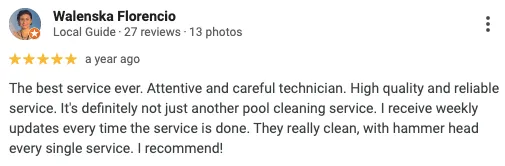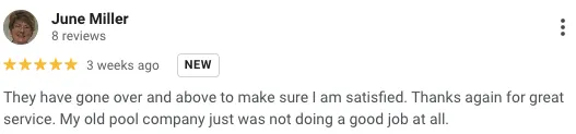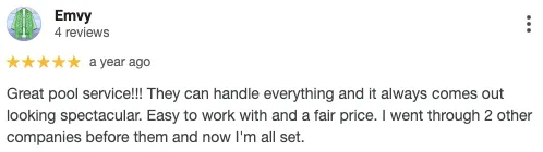 I called Camarato Pool Care after my pool turned green over the weekend. They came the next day and took care of it super fast. Really friendly tech too. I signed up for weekly service right after and been happy since. - James F.